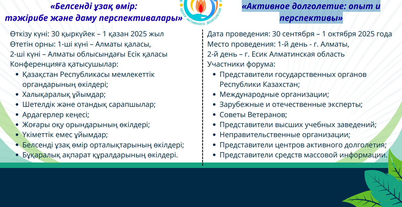 ХАЛЫҚАРАЛЫҚ ФОРУМ БАҒДАРЛАМАСЫ «Белсенді ұзақ өмір: тәжірибе және даму перспективалары»